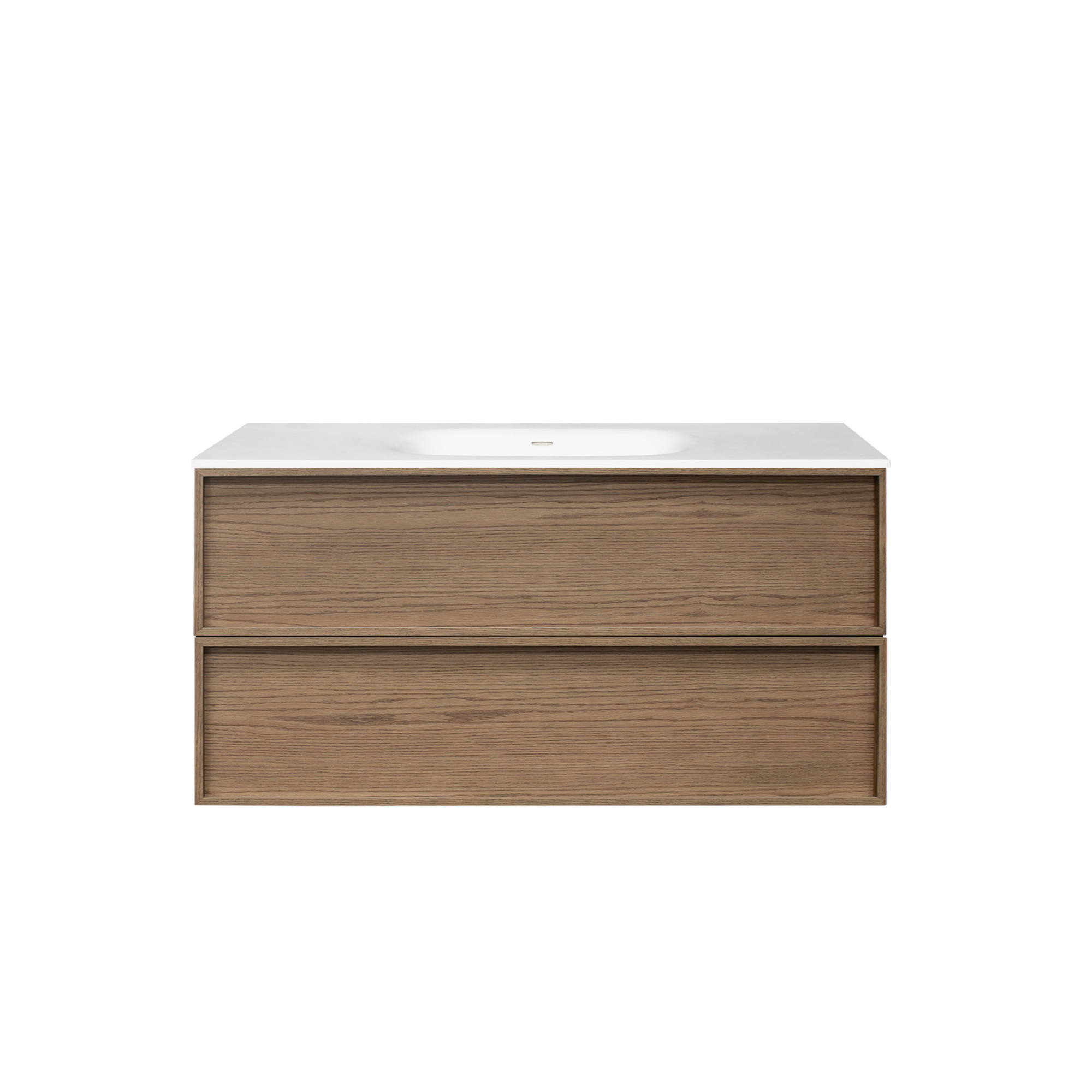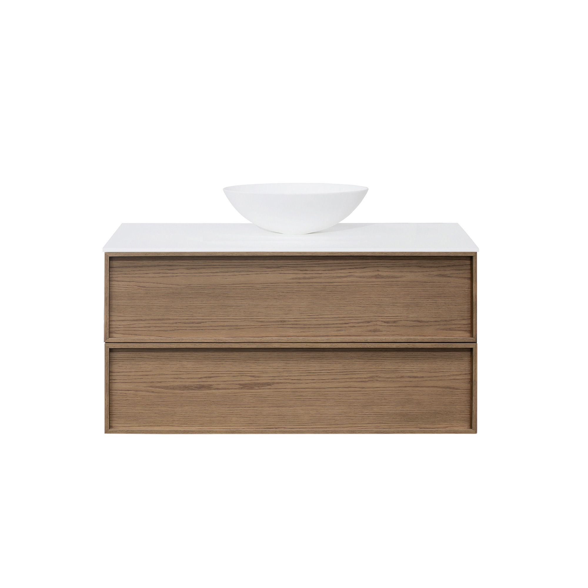 Configuration: Two soft closing drawers with single basin